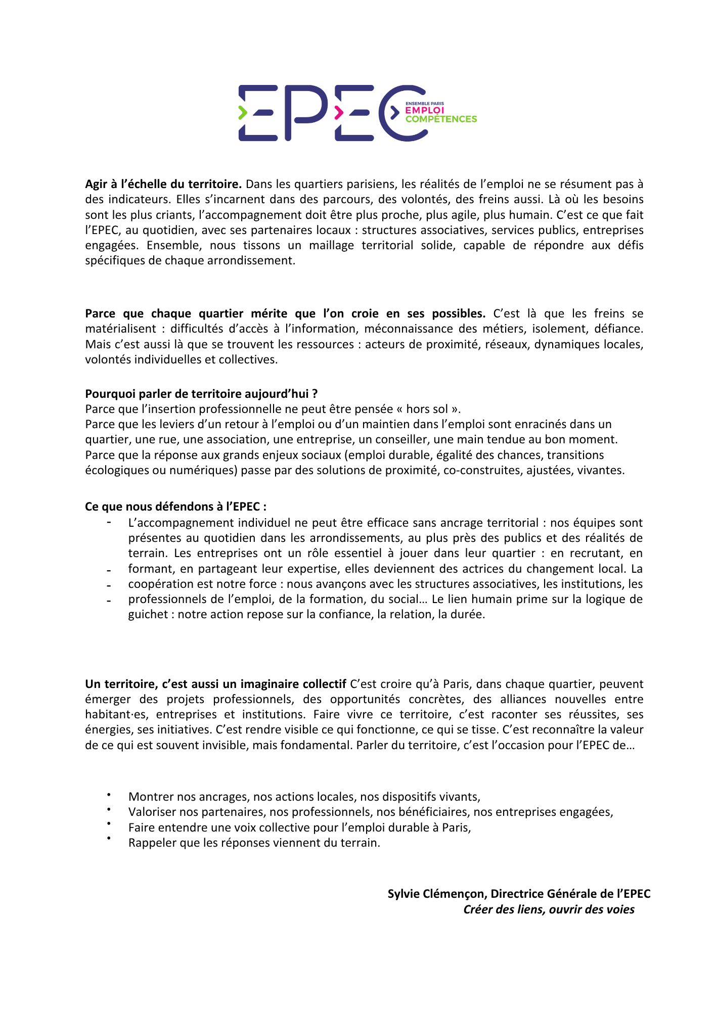 Plaidoyer sur le territoire - Agir local pour l’emploi durable à Paris