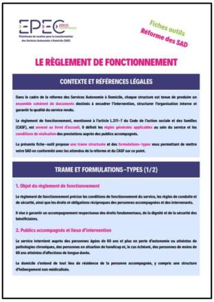 Le règlement de fonctionnement :