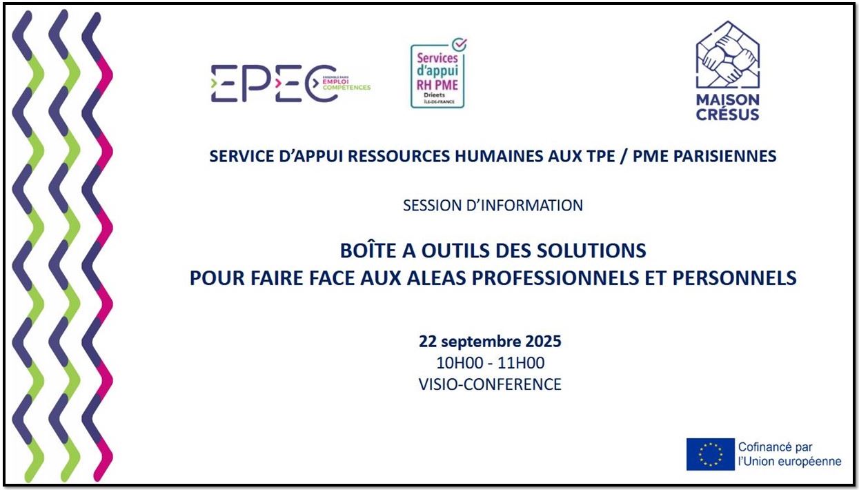 Dans le cadre de leur partenariat opérationnel pour appuyer / accompagner en toute complémentarité, les petites entreprises qui rencontrent des incertitudes économiques, le SARH a organisé avec la Fondation CRESUS - Maison CRESUS, une deuxième session d'information sur la boîte à outils des solutions pour faire face aux aléas professionnels et personnels des chefs de petites entreprises.