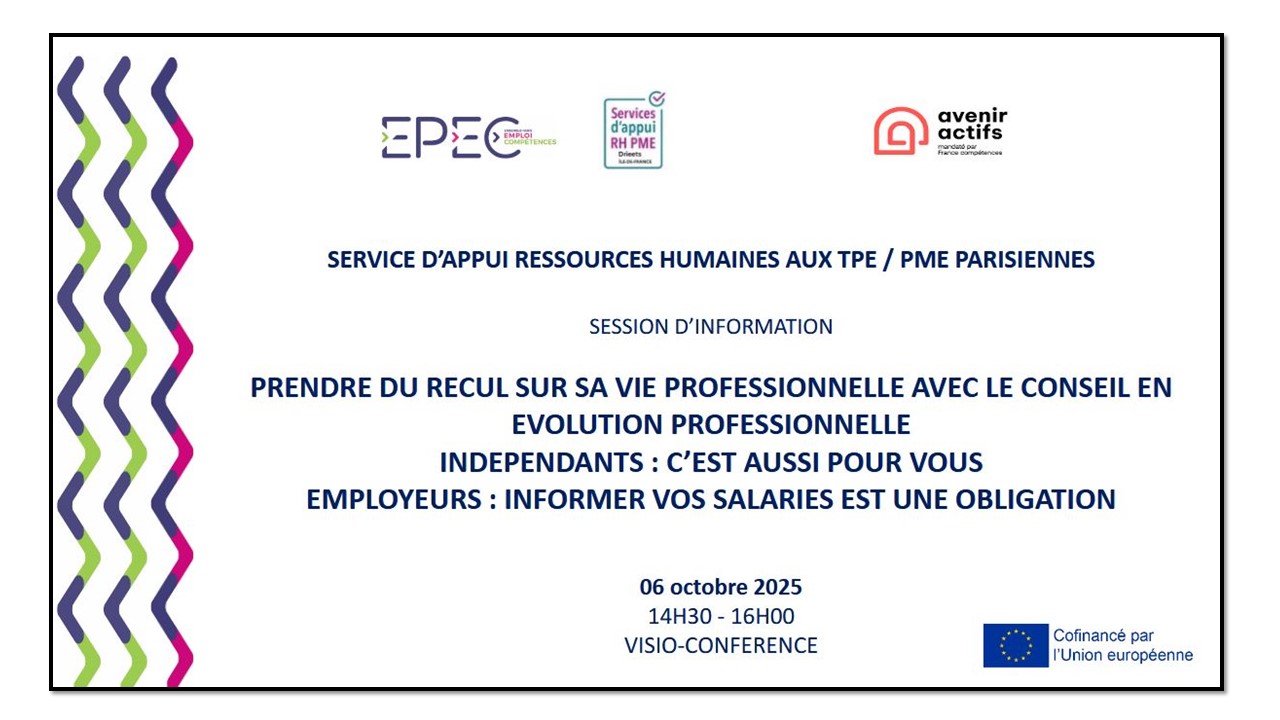 Pour en savoir plus, suivez le lien vers l'article proposé à l'issue de notre première session d'information : https://www.epec.paris/sarh-tpe-pme-le-saviez-vous-le-conseil-en-evolution-professionnelle-c-est-aussi-pour-les-0